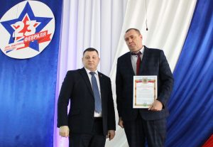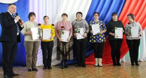 В этот день Валерий Юрьевич отметил многих сараевцев почетными грамотами и благодарностями районной администрации, благодарственным письмом областной Думы, а также вручил мужчинам золотые знаки комплекса ГТО и медали спортивным командам за победу и призовые места в соревнованиях. Юбилейную медаль к 80-летию Победы глава вручил ветерану Таисии Николаевне Ивановой, бывшему педагогу Сараевской школы. Особую благодарность получили женщины-волонтеры из творческой мастерской «Открыто сердце для добра», которые плетут маскировочные сети.