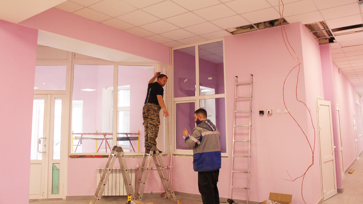Строительные работы в здании блока начального образования Сараевской школы находятся на стадии отделки и монтажа коммуникаций, обеспечивающих жизнеобеспечение объекта – электрики, сантехники и других.
