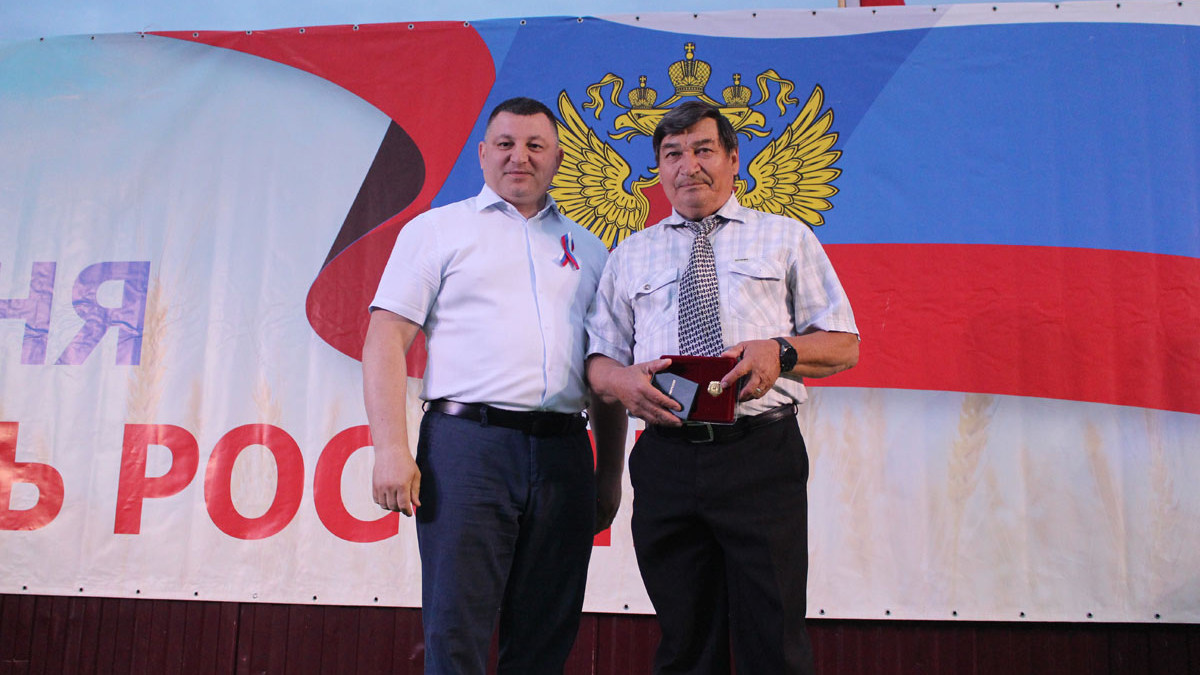 Удостоверение о присвоении звания Александру Ивановичу вручил в торжественной обстановке глава администрации района Валерий Дмитриев на праздновании Дня России.