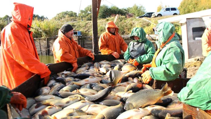 Облов прудов – дело тоже непростое, здесь задействована не только техника, но и людской ресурс. Рабочие в защитной форме стоят за сортировочным столом, управляют механизмами и в солнечный день, и в непогоду. Но их главная задача – в полном объеме собрать выращенный урожай и отправить его по назначению. И с этой задачей труженики рыбхоза справляются успешно».
