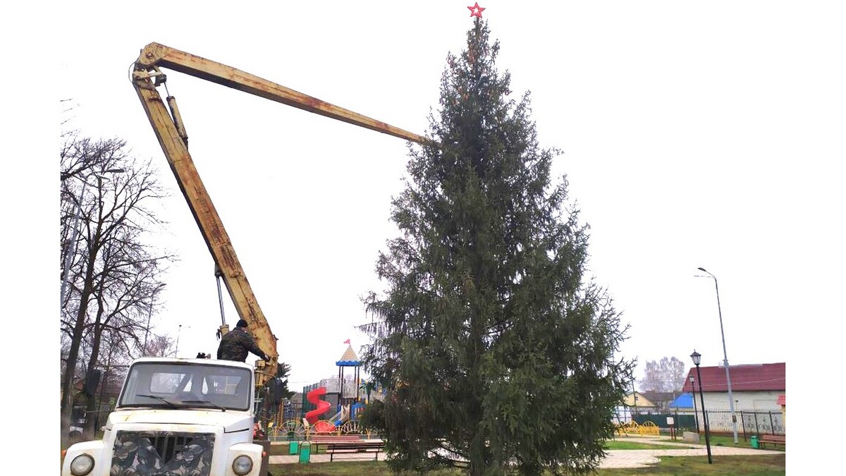 Житель Сараев к новогодним праздникам подарил поселку ель почти 15 метров высотой. Ее уже установили в самом центре, рядом с детской площадкой.