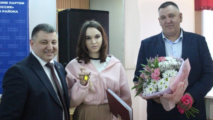Мария учится в Сараевском многофункциональном колледже на бухгалтера и совсем недавно отметила совершеннолетие. Вручая ключи, глава округа Валерий Дмитриев поздравил девушку и пожелал ей счастья, удачи и здоровья.